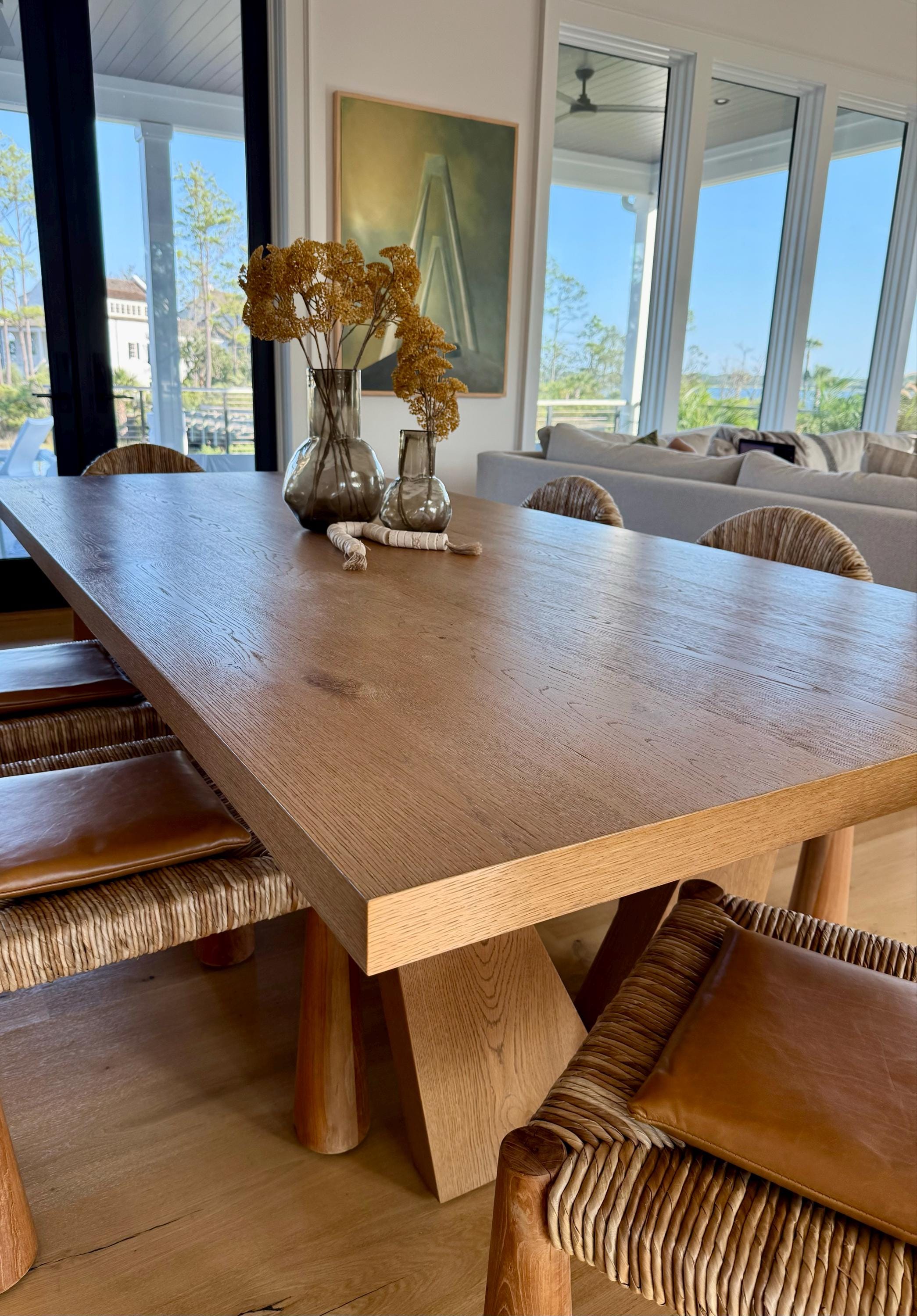 First, I sent away for leather samples which helped me make my leather color decision! Then I made a request to Deanna about the thickness of my 6 dining chair cushions. They are perfect & arrived on schedule. I emailed her about the delivery date and she got right back to me. Great customer service and the pillows are fabulous…..the leather is soft & the color is great!