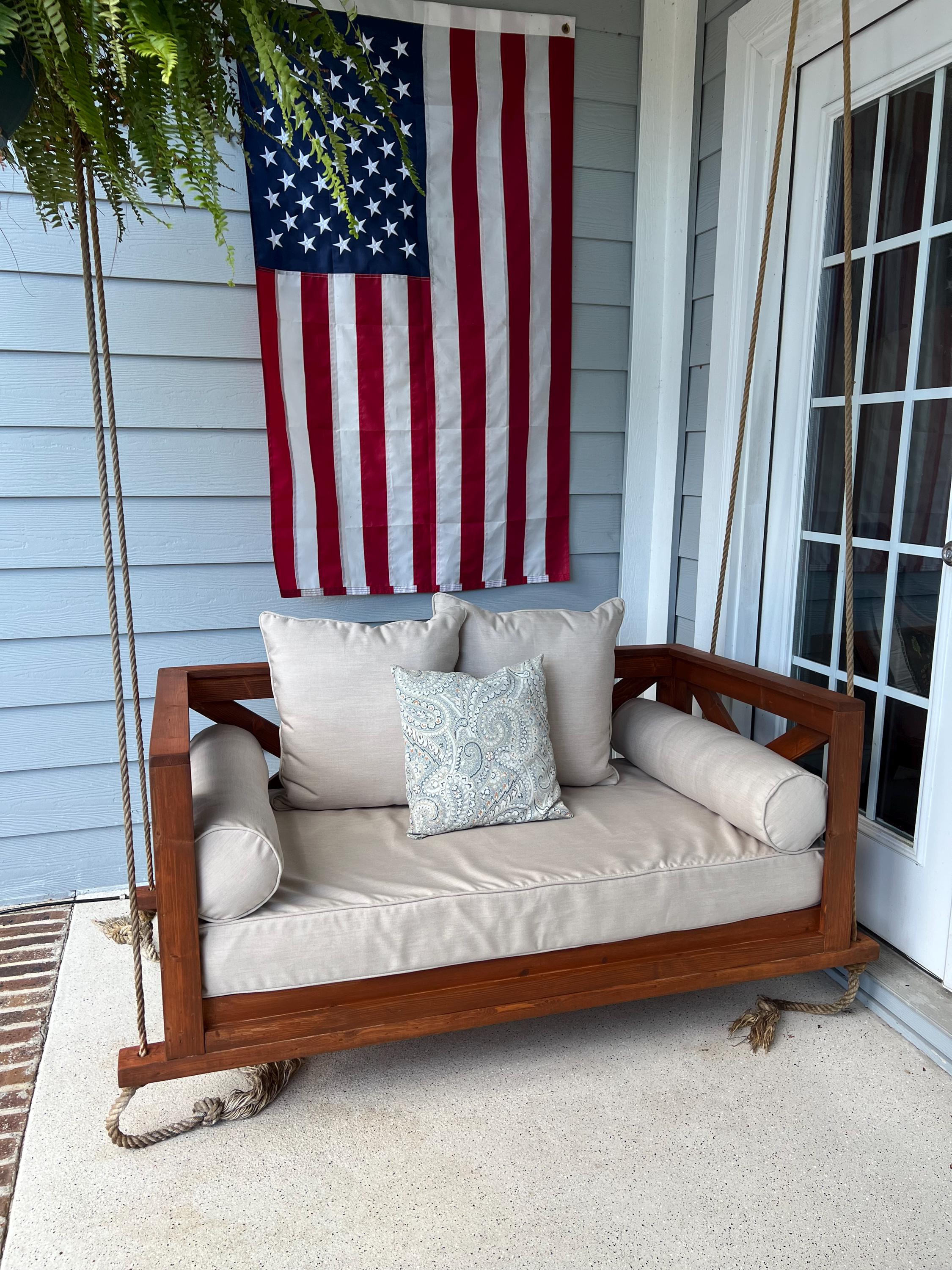 I am in love with this cushion/cover set! Fantastic quality…well made. It makes my porch swing bed look even more beautiful. Shipping was faster than expected, as well!